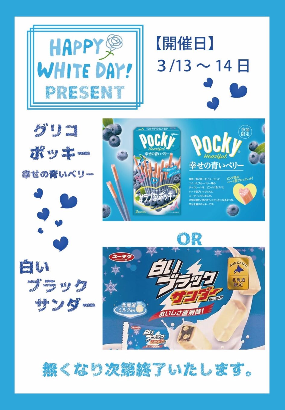 期間中、グリコポッキー幸せの青いベリーor白いブラックサンダーをプレゼント!